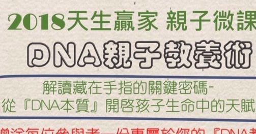 12/15,協會年度回饋的親子微課,同步贈送一人一份專屬《DNA教養報告》(市價$1500元)。